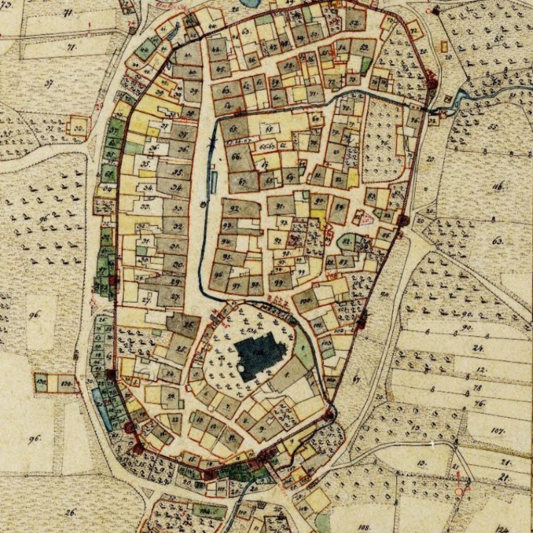- The historic town square is still surrounded by the remainings of the middle-aged curtain wall with its ten defense towers.